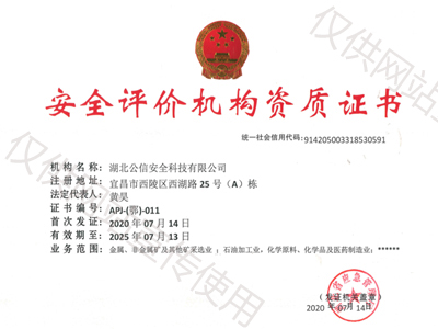 資質(zhì)名稱:安全評價機(jī)構(gòu)資質(zhì)證書